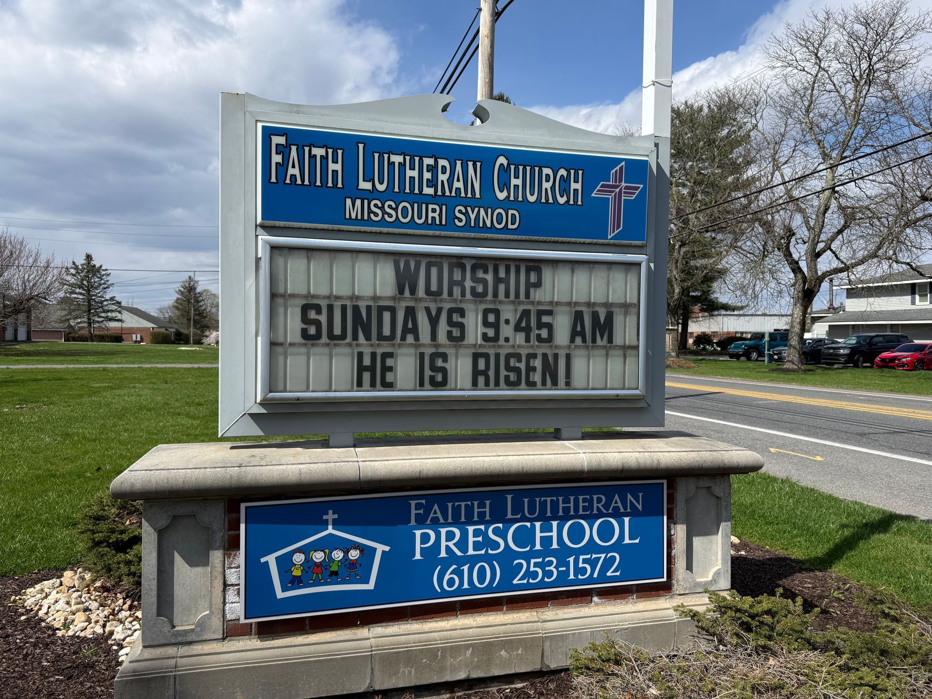 The entrance to Faith Lutheran Church as seen from Sullivan Trail.